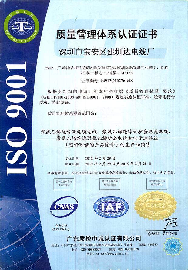 建圳達電纜立足于中國深圳,擁有技術(shù)精湛的隊伍、現(xiàn)代化生產(chǎn)設(shè)備、精密的檢測儀器,從原材料、生產(chǎn)、成品嚴格按照國家標(biāo)準(zhǔn)檢測,通過多個認證。